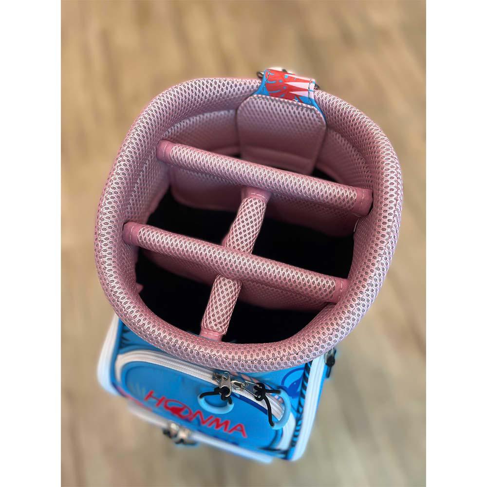Túi đựng gậy golf Honma có bánh xe vừa được ra mắt là sản phẩm ưu tiên dành cho hội chị em. Thiết kế không chỉ giúp người chơi bảo quản tốt gậy golf, tiện lợi hơn trong việc di chuyển trên sân êm ái mà còn là phụ kiện thời trang tôn lên sự ngọt ngào và đáng yêu cho phái nữ với bảng màu thanh xuân: Hồng / Xanh.